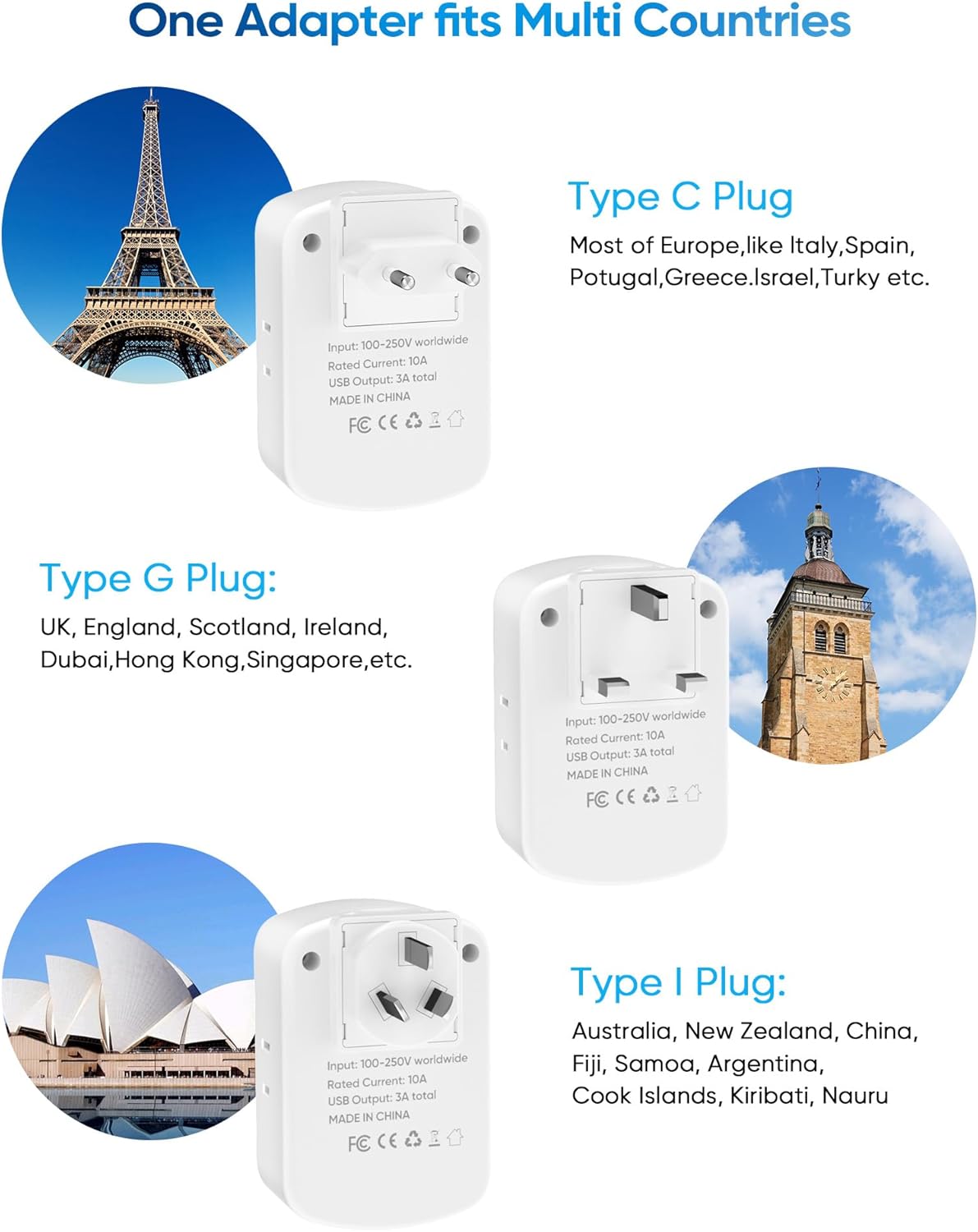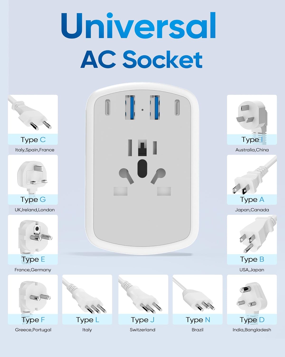 Designed for convenience and efficiency, this travel adapter is compact and lightweight, making it the perfect travel accessory for your next adventure. The Type A/C/G/I Plug Adapter ensures compatibility in over 200 countries, so you can stay connected and powered up wherever you go.